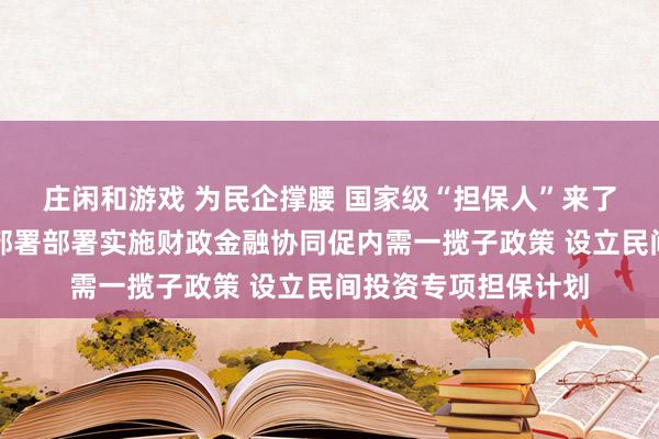 庄闲和游戏 为民企撑腰 国家级“担保人”来了!国务院常务会议部署部署实施财政金融协同促内需一揽子政策 设立民间投资专项担保计划