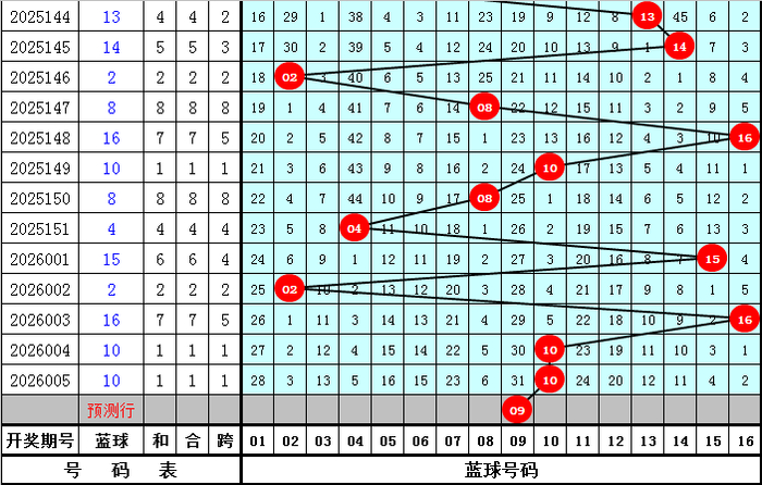 蓝球分析:上期蓝球奖号开出10,为大号,上周二蓝球奖号开出16,最近十周二蓝球号码大小比为5:5,蓝球大小 号出现个数相等,本周二注意蓝球开出大号,看好蓝球号码09、10、11、12、14。