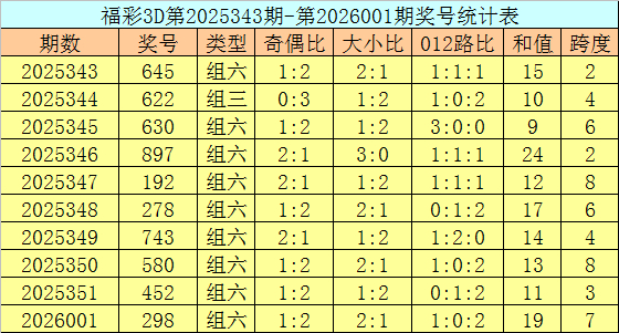 上期回顾:福彩3D第2026011期开奖号码为647,组选类型为组六,奇偶比为1:2,大小比为2:1。