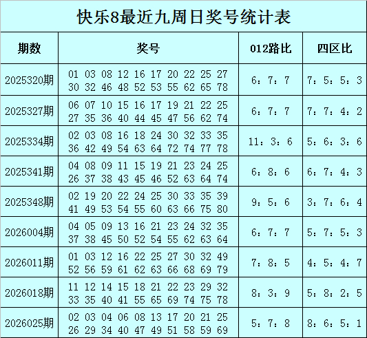 福彩快乐8第2026025期(上周日)开奖回顾:02 03 04 06 08 13 17 20 21 25 26 29 34 40 47 49 51 58 59 69,其中奖号四区比为8:6:5:1,012路比为5:7:8。