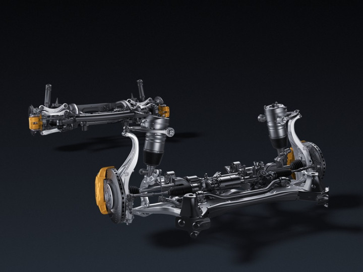 在账面交融上,更多东说念主认为,顶级的悬架成就应该是“前双叉臂+后五连杆”,这么的悬架结构是最顶的,若是能用上弥远的铝合金、副车架,成就上能上空气悬架、电控减震。