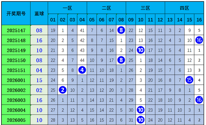 上期开出蓝码10,最近10期蓝球号码分别开出08、16、10、08、04、15、02、16、10、10,近10期012路比为1:6:3,1路号码走势较热,本期预测开出1路号码:07。