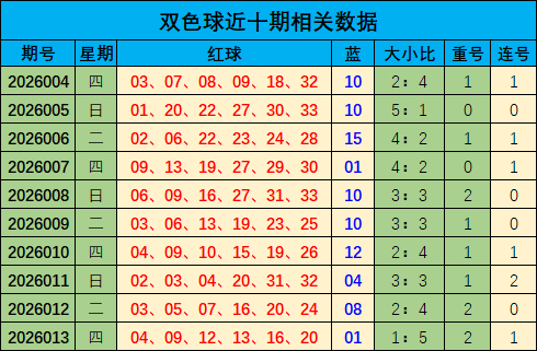 上期与前一期相比开出连号12 13,近十期有6期开出连号,有4期未开出连号,本期预测开出连号 04 05 。