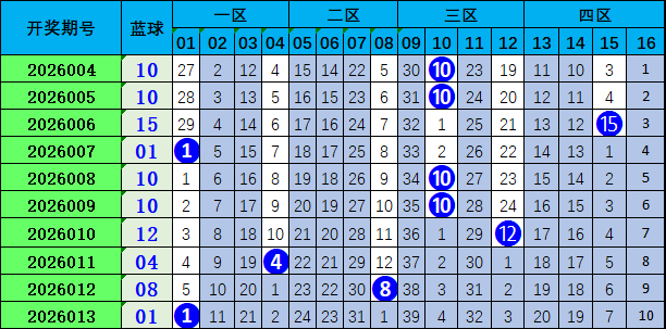 红球一位号:上期开出号码04,出现在第一区,与上一期对比上升1个点位,本期预计该号位不变,参考号码 04。