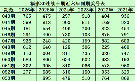 陈青峰福彩3D第2026053期推选: