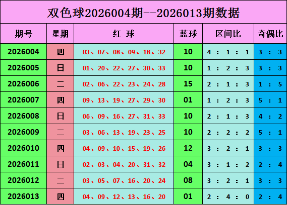 双色球第2026013期开奖:本期开奖号:04 09 12 13 16 20。蓝球:01,奇偶比为2:4。
