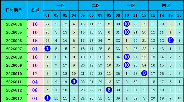 蓝球:前10期蓝球分别为:10 10 15 01 10 10 12 04 08 01,其中奇偶蓝球偶数球胜出,本期看好奇数蓝球,参考蓝球09.