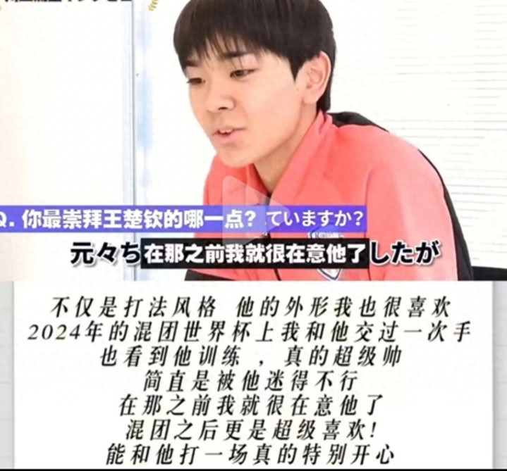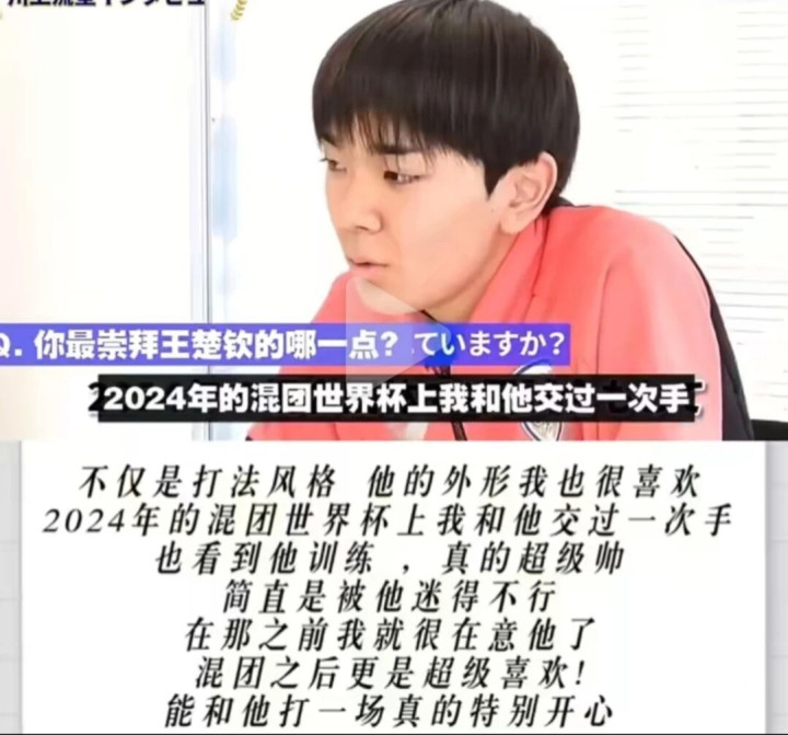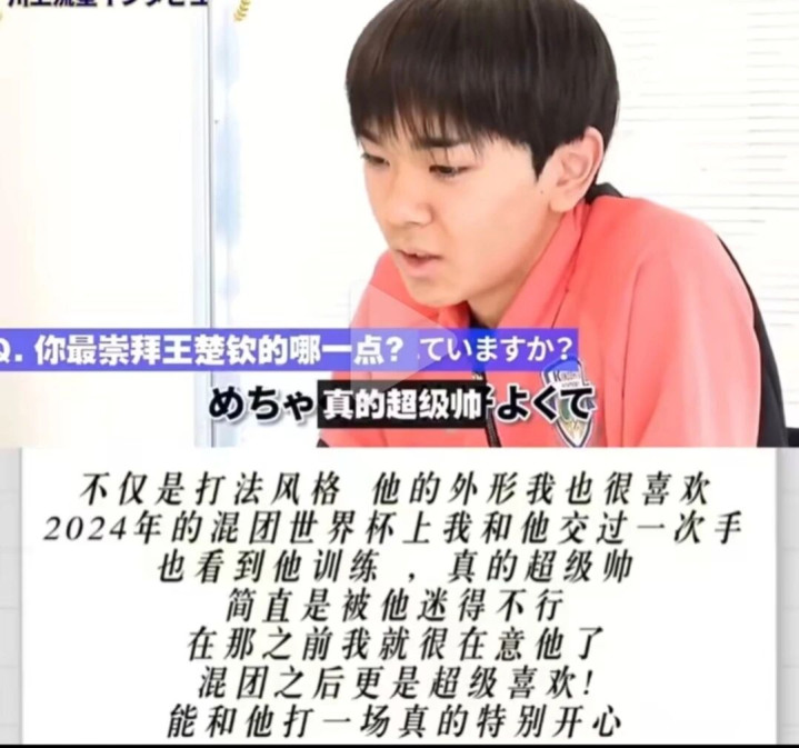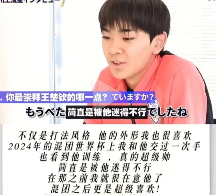 不过川上流星却是王楚钦的超级迷弟,在最新的采访中川上流星表示他早就注意到王楚钦了,在2024年国际乒联混合团体世界杯上他和王楚钦有过一次交手。